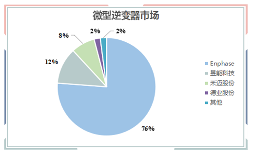 ▲數(shù)據(jù)顯示,Enphase占據(jù)市場四分之三還多的份額,昱能科技和禾邁股份的市場份額相對來說比較小。
