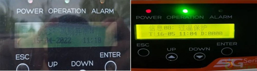 圖3:風(fēng)扇故障導(dǎo)致逆變器顯示風(fēng)扇異常及過溫保護(hù)報警