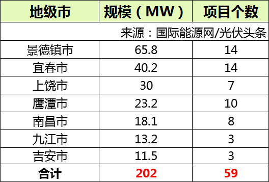 根據(jù)公布的項(xiàng)目名單,此次共公布59個(gè)項(xiàng)目,總規(guī)模約為202MW。不同地級(jí)市的規(guī)模如下表所示。