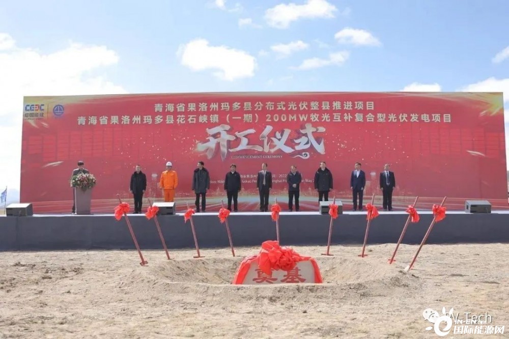 5月22日,由中國能建葛洲壩集團投資建設的青海省果洛州瑪多縣花石峽鎮(一期)200MW牧光互補復合型光伏發電項目、瑪多縣分布式光伏整縣推進項目開工儀式在花石峽鎮項目現場舉行。