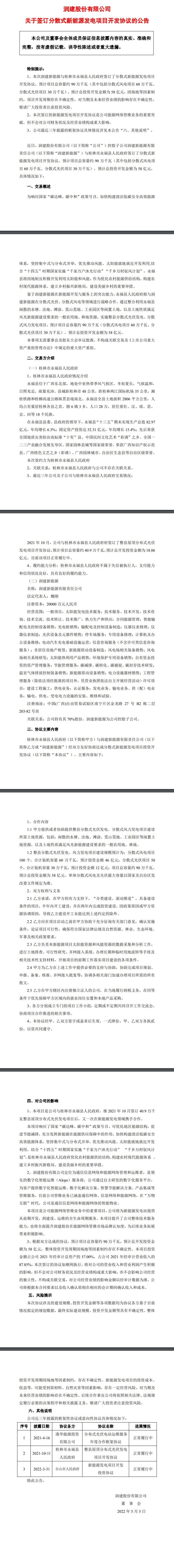 2021 年 10 月,潤建股份曾與桂林市永福縣人民政府府簽訂了整縣屋頂分布式光伏發(fā)電項目開發(fā)協(xié)議,預(yù)計項目總?cè)萘考s 40.9 萬千瓦,預(yù)計總開發(fā)投資金額為 18.06億元。目前該項目正常履行中。