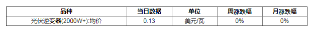 10月28日光伏-逆變器價格近一個月以來無異動:光伏逆變器(2000W+)當(dāng)周報價0.13美元/瓦。